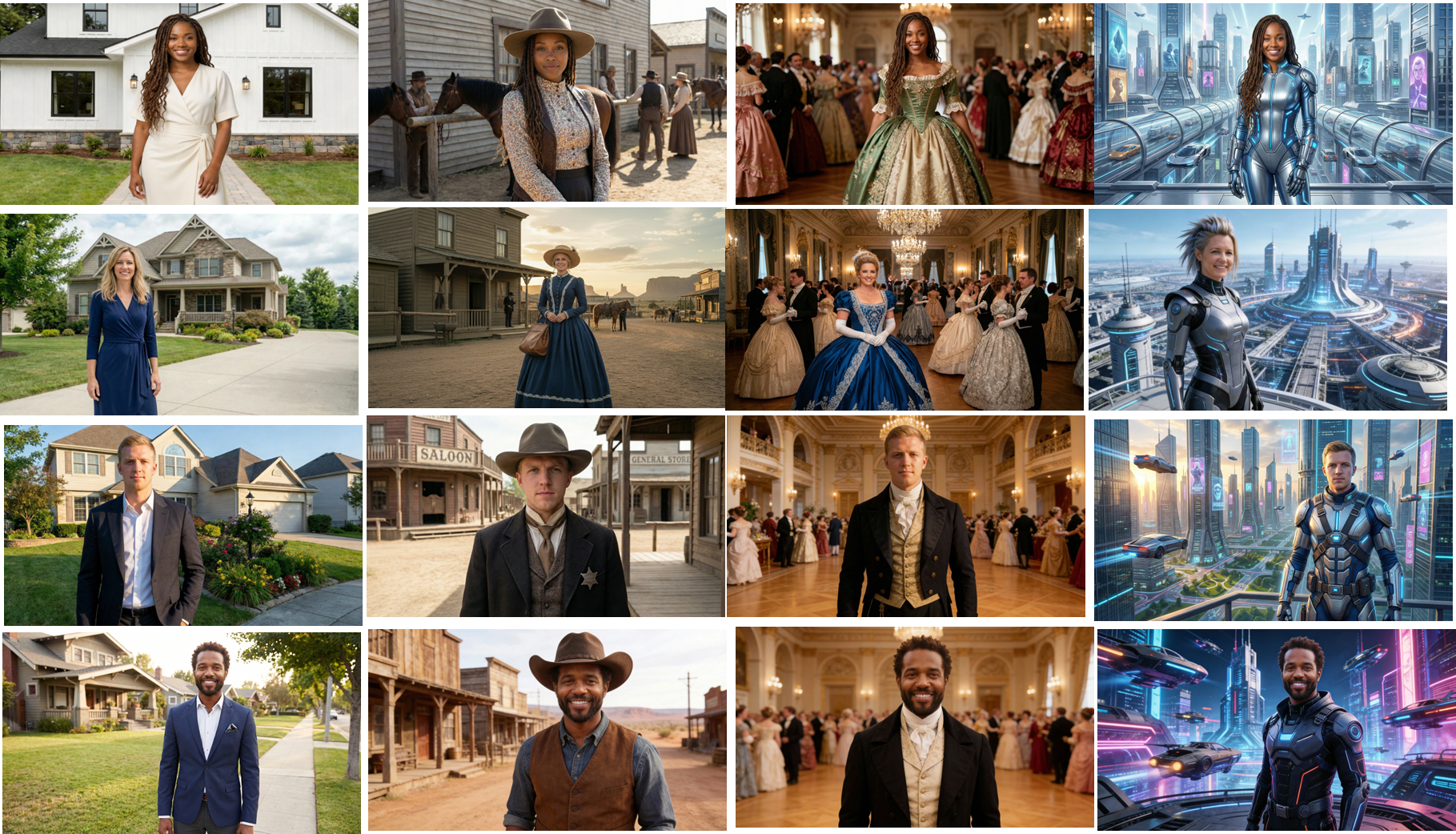 How about stepping back in time? Want to wear a beautiful gown and go to a magnificent ball? Let me get you there! How about the wild, wild west? Let me put you there!